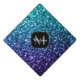 Personnalisez le casquette brillant de graduation avec votre initiale et votre nom et en faire un cadeau unique pour les diplômés. De belles parties scintillant brillantes en bleu foncé et bleu clair scintillent aqua purple ombre. Photo cyan et bleu foncé pétille pas parties scintillant réelle!