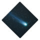 Une comète éblouissante crée une boule brillante et floue dans le ciel nocturne, suivie d'une queue bleue qui se déplace lentement parmi les étoiles dans cette vue stellaire améliorée. Les comètes sont des objets célestes dans le système solaire qui se composent d'un noyau d'eau gelée, de gaz gelés, de petites roches et de poussière qui orbitent le Soleil dans un chemin elliptique. Nous voyons des comètes lorsque la chaleur du Soleil vaporise l’eau et les gaz qui reviennent du noyau dans un long sentier radieux.