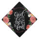 Super mignon dessus casquette avec calligraphie originale de Joy Kelley sur un arrière - plan noir orné de fleurs d'aquarelle. Personnalisez avec votre nom et votre année de classe.