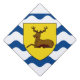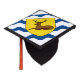 Graduation Cap Topper avec design avec un drapeau du comté historique de Hertfordshire, en Angleterre, Grande-Bretagne; drapeau avec une illustration d'un cerf dans un bouclier jaune sur blanc et bleu ondulé arrière - plan