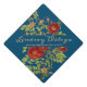 Customisez vos accessoires grâce à cette belle topper fleurie et scripteuse. Un turquoise profond déclenche une branche roses de jardin et entoure le script tendance Nom du diplômé. Une deuxième bande de modèles est fournie pour la classe de nom d'école année du texte de votre choix. Célébrez la floraison de votre fleur sauvage.