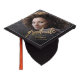 Un capuchon moderne avec une photo personnalisée. Le mot "gradué" apparaît dans le script de faux feuille d'or, avec le nom du diplômé et l'année de graduation ci-dessous en fonte sans serif couleur or. Remplacez facilement l'image de l'échantillon par la photo de votre diplômé. Un écran de dégradé noir permet de s'assurer que le texte s'affiche. Idéal pour obtenir un diplôme d'études secondaires ou collégiales.