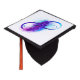 Infinity symbole with a beautiful feather painted in purple and blue bright colors on white background