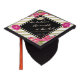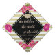 Élégant casquette diplômé parties scintillant or avec fleurs sur arrière - plan rayé.