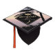 Élégant casquette diplômé en parties scintillant or, talons hauts au coucher du soleil sur la plage.