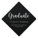 Ce dessus de capuchon de graduation comporte une police de script décontracté simple avec un thème noir et blanc. Customisez le texte avec le nom du diplômé, l'école et l'année. Visitez ma collection de diplômes pour voir toutes les options de coordination et les options de couleur. #diplômé #classof