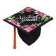 Super mignon dessus casquette avec calligraphie originale de Joy Kelley sur un arrière - plan noir orné de fleurs d'aquarelle. Personnalisez avec votre nom et votre année de classe.