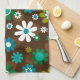Un torchon de cuisine rétro moderne à motif de fleurs de marguerite marron, bleu et blanc