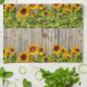 Égayez votre décoration de cuisine avec un jardin de tournesols rustiques, avec une clôture en bois en arrière-plan torchon de cuisine. Cette serviette sera superbe lorsqu'elle est coordonnée avec une décoration de ferme.