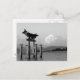Black and white photography of big torii gate at Itsukushima Shrine on Miyajima Island in Japan.