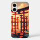 An iconic LoFi art style of a floating torii gate rises from tranquil waters, embodying the spiritual stillness of Japan.