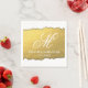 A fun yet unique set of wedding napkins featuring an elegant Faux Gold texture with the information of the bride and groom and a last name monogram. The napkins feature a torn out printed look.
