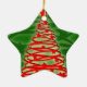 Watch the stars go around in this decorative ornament with a red tornado christmas tree spinning the star ornaments around with a green background with a dark green pattern in it.