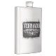 The product is a good size and came exactly as it was pictured. The lid is not attached to the flask, which could be dangerous on drunken nights... The print came out surprisingly well and looks very sharp. Would definitely recommend.