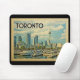 Toronto Canada design in Vintage Travel style featuring the CN Tower and city skyline view with the harbour in front.