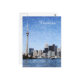 Toronto harborfront as seen from Toronto island with CN tower and ferry
