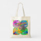 These bags were super cute (I purchased 3). The material is more of a canvas look & feel. The colour of the bag is slightly off white, but the letters look exactly as pictured. I took 3 photos in different lighting. Would recommend! I liked how there was an option to choose the font and colour of the name. The words are legible and the colours are exactly as pictured.