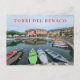 A beautiful view of he small harbor of Torri del Benaco on Lake Garda in Italy printed on a postcard.