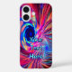A bright, multi-coloured (red, purple, blue) looping, rotational fractal image. Customize by adding your own text.
