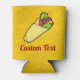 Cartoon illustration of tortilla sandwich wrap. Junk food outline icons yellow pattern background. Custom text on both sides.