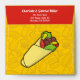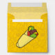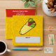 Cartoon illustration of tortilla sandwich wrap. Junk food outline icons yellow pattern background. Custom text.