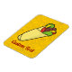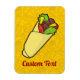 Cartoon illustration of tortilla sandwich wrap. Junk food outline icons yellow pattern background. Custom text.