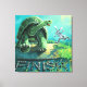 Cute Tortoise and the Hare Art depicts Tortoise about to cross the finish line with Hare racing behind in blue and green tones. Anyone who loves this fun Aesop's fable will enjoy this artwork. A great gift for anyone crossing a finish line in their lives, like graduation from school. Finishing an important project. Keep on plodding away and you will win.