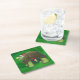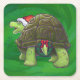 Tortoise in Santa Hat On Green Square Paper Coaster