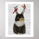 Tortoiseshell Cat with Antlers and Red Birds Poster