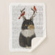 Tortoiseshell Cat with Antlers and Red Birds Sherpa Blanket