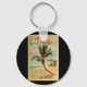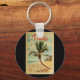 A uniquely retro mid-century modern Tortola Virgin Islands art print in vintage travel poster style. It features a curved palm tree on sandy beach with ocean under a blue cloudy sky.