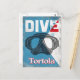 Tortola British Virgin Islands vintage scuba mask travel poster design. A blue and white diver down flag background with a retro scuba mask and word "Dive" at the top.