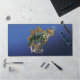 Une tortue de mer nageant par une roue, une corde et une ancre.