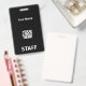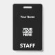 Easily personalize this Custom Administrative professional Name Badge without photo, with Scan Qr Code and large business logo. A simple business design in simple cool total black and white colours fully customizable in front and back sizes, sans-serif basic and modern fonts and a professional and clear look, perfect for small business employee, boss, guests. These business id badges supplies are avaiable with lanyard, metal clip or with retractable. No minimum order, but save money and enjoy Zazzle discounts by multiple orders!