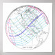 Path of the total solar eclipse of April 8, 2024 represented on a global map from NASA that shows the times of the transit and the point of greatest eclipse. Note that the narrow path of totality for North America begins on the Pacific border of Mexico and travels Northeast through Texas and Midwest states, exiting on the eastern border of Maine and into New Brunswick Canada.