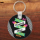 This totally fun keychain has a design of a striped banner, pink hearts, and text to personalize with all your wedding details. If you want to have a 80’s wedding this would be perfect as a favour for your big day.