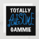 Totally Awesome Gammie T-shirts, hoodies, mugs, gammie keepsakes, cards, buttons, stickers, and more for the totally awesome grandmother or gammie to be with bright blue text with black or white text for light and dark colours t-shirts and gifts.
