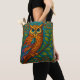 Designed in an ornate folk-art style, this artwork features a beautifully detailed owl perched among swirling botanical patterns, glowing colors, and intricate decorative motifs. The bold combination of teal, gold, orange, and jewel tones creates a captivating aesthetic that stands out on any product.