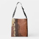 This Tote Bag comes in a rustic, gritty design in shades of orange, brown, and white.