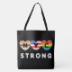 Beautiful quality tote bag in a heavy coated canvas. Shoulder strap is perfect length. Graphics are absolutely beautiful. The printing was great. The pink and black were perfect but the green didn't print as rich in color.