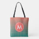 Cet élégant sac fourre-tout tout-en-un monogrammé abstrait est doté d'un mélange de couleur coucher de soleil sur la plage, motif de corail et turquoise ; un sac fourre-tout d'été parfait.