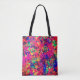 Beau sac fourre-tout multicolore aux couleurs vives de rouge, bleu, violet et vert.