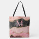 Ce sac présente un élégant et glamour arrière - plan en marbre rose, rouge et noir agate avec des accents de parties scintillant faux or. Le monogramme combine écriture manuscrite et polices sans serif modernes pour un look élégant et sophistiqué. Cela fera le cadeau idéal car il peut être customisé avec un nom et une initiale. Les paillettes et la texture en mauvais état créent un mélange parfait de chic et de grunge.
