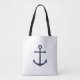 Sac fourre-tout nautique minimaliste moderne avec ancre bleu marine sur arrière - plan blanc. Un cadeau d'été parfait pour elle et plus.