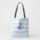 Sac de femme de ménage nautique design avec ancre avec fleurs sur un arrière - plan à rayures bleues.