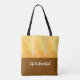 Un sac de magasinage conçu avec une base marron et une couleur jaune clair douce. Surprenez vos amis ou membres de votre famille lors de leur occasion spéciale avec un sac fourre-tout moderne aquarelle. Sobre et élégant sac design coloré est idéal pour le cadeau. Étendre vos souhaits et votre amour, partager leur bonheur avec une carte de voeux aussi.