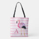 Tote Bag Aquarelle mignonne Flamant rose Monogramme Bande r