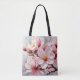 De grandes fleurs d'abricot rose et blanc sur un arrière - plan gris et doux créent un sac fourre-tout magnifique qui est parfait pour la maison, le bureau ou l'école.
