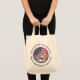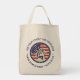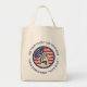 Le sac fourre-tout Budget présente une graphique de typographie Pro Démocratie avec un badge graphique de la Statue de la Liberté de couleur patriotique au centre, entouré de texte circulaire qui lit "Utilisez votre voix, utilisez votre vote, sauvez la démocratie et votez bleu.