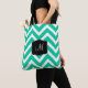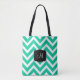 Tote Bag Bandes de Chevron Turquoise et Blanc avec Monogram